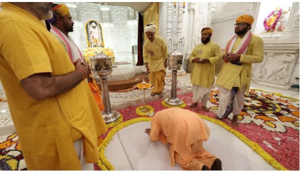 हनुमानगढ़ी से निकलने के बाद मुख्यमंत्री योगी आदित्यनाथ सीधे श्रीराम जन्मभूमि परिसर पहुंचे। यहां उन्होंने प्रभु श्रीरामलला के दरबार में हाजिरी लगाई, आरती उतारी और मंदिर की परिक्रमा की।