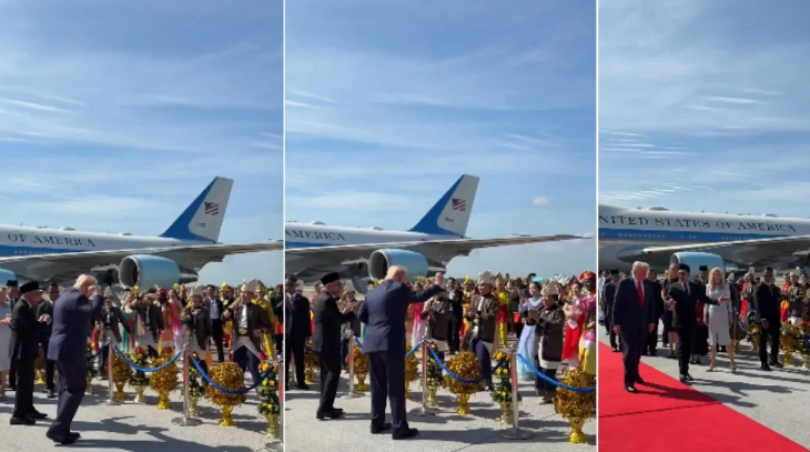 वायरल हो रहे वीडियो में अमेरिकी राष्ट्रपति डोनल्ड ट्रंप को मलेशिया के प्रमुख जातीय समूहों, जिनमें बोर्नियो के मूल निवासी, मलय, चीनी और भारतीय शामिल हैं, का प्रतिनिधित्व करने वाले रंग-बिरंगे परिधानों वाले नर्तकों के साथ डांस करते देखा जा सकता है।