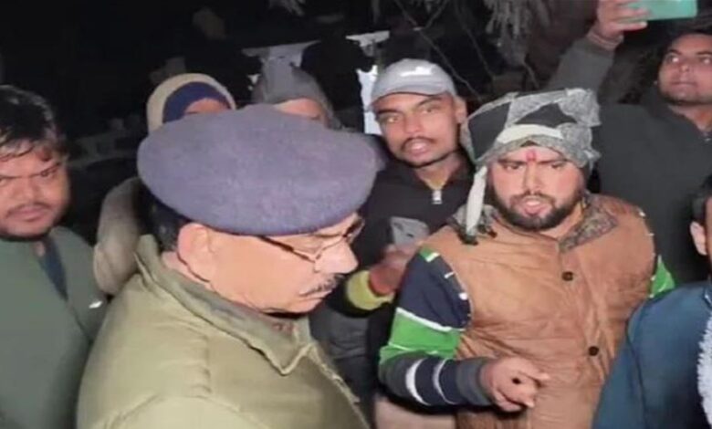 मंदिर के पास पशुओं के अवशेष मिलने पर हिंदूवादी संगठनों का प्रदर्शन