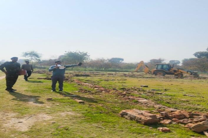 ग्राम प्रतापपुरी हरी – 9 बीघा में विकसित अवैध प्लाटिंग के विरुद्ध कार्रवाई।